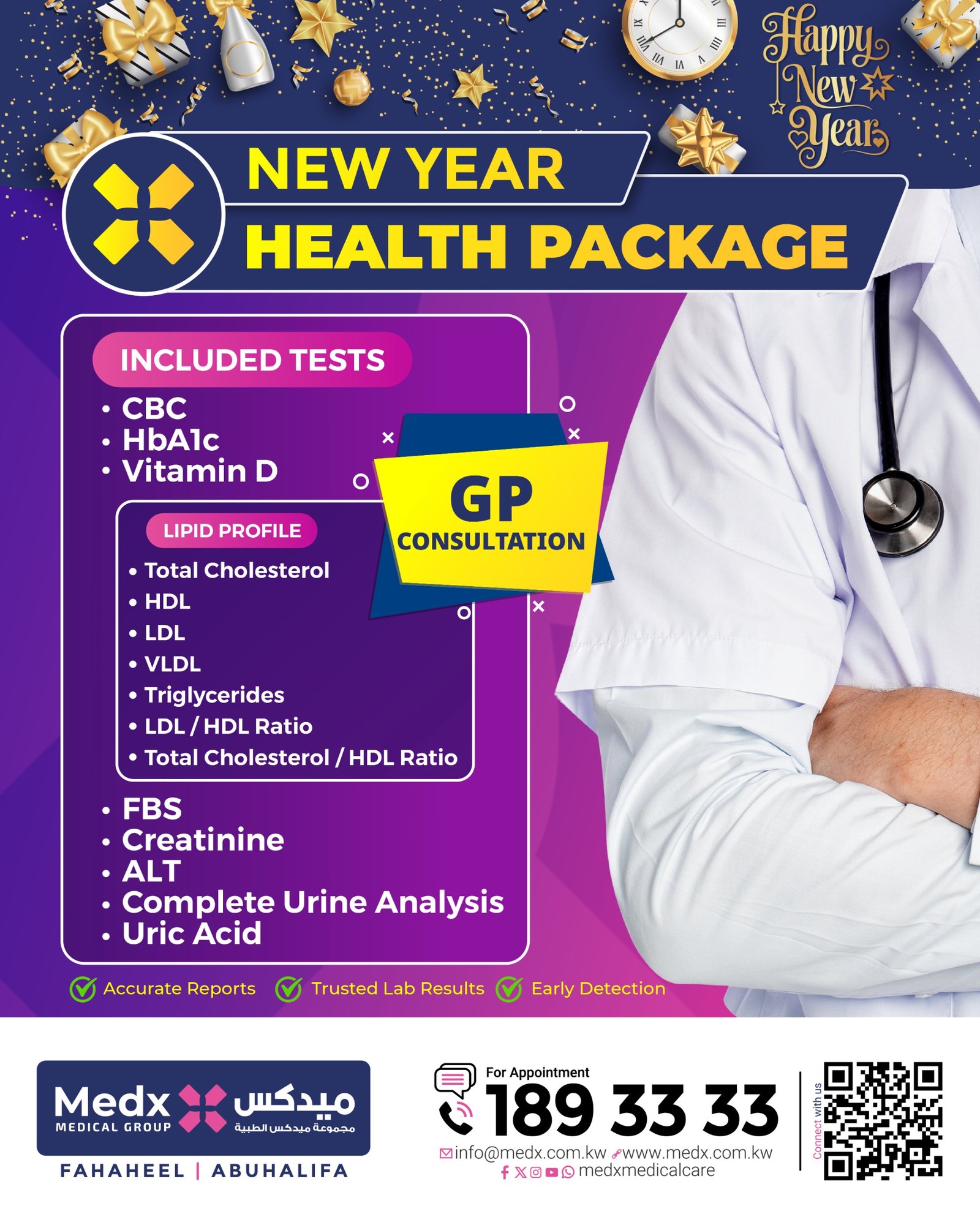 കുവൈത്ത്സിറ്റി:ന്യൂ ഇയർ പ്രമാണിച്ച് പുതിയ ന്യൂ ഇയർ ഹെൽത്ത് പാക്കേജ് അവതരിപ്പിച്ച് MedX Medical Group. CBC, HbA1c, വിറ്റാമിൻ D എന്നിവ ഉൾപ്പെടെയുള്ള പരിശോധനകൾ അടങ്ങിയ ഈ ഹെൽത്ത് പാക്കേജ് മെഡക്സ് മെഡിക്കൽ ഗ്രൂപ്പിന്റെ രണ്ട് ശാഖകളിലും ലഭ്യമാണെന്ന് മെഡക്സ് മാനേജ്മെന്റ് അറിയിച്ചു.ഡിസംബർ 29 മുതൽ ആരംഭിച്ചിരിക്കുന്ന ഈ പാക്കേജിന്റെ ആനുകൂല്യം ജനുവരി 31 വരെ ലഭ്യമാകുമെന്ന് അധികൃതർ വ്യക്തമാക്കി.