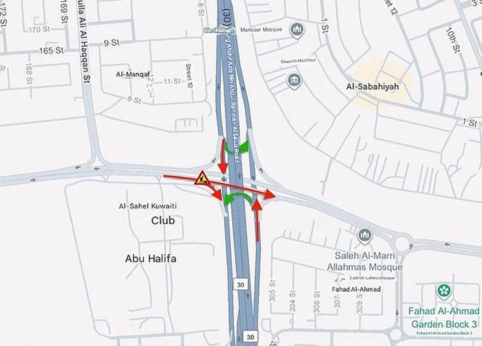 അബു ഹലീഫ – ഫഹദ് അൽ-അഹമ്മദ് റോഡിൽ ഗതാഗത നിയന്ത്രണം