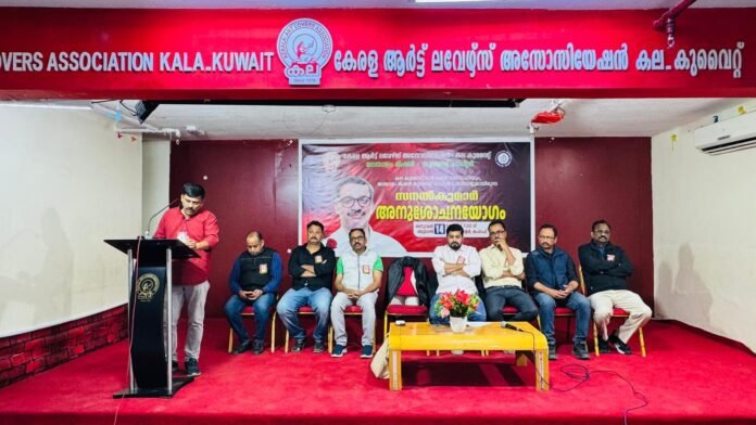 കുവൈറ്റ് സിറ്റി: കേരള ആർട്ട് ലവേഴ്സ് അസോസിയേഷൻ – കല കുവൈറ്റ് മുൻ കേന്ദ്ര ഭാരവാഹിയും മലയാളം മിഷൻ കുവൈറ്റ് ചാപ്റ്റർ പ്രസിഡന്റുമായിരുന്ന സനൽകുമാറിന്റെ ആകസ്മിക വിയോഗത്തിൽ അന്ത്യാഞ്ജലി അർപ്പിച്ച് കുവൈറ്റ് മലയാളി സമൂഹം. കുവൈറ്റിലെ മാതൃഭാഷ പഠന പ്രവർത്തനങ്ങളിലും കലാ സാഹിത്യ സാംസ്കാരിക സംബന്ധമായ വിഷയങ്ങളിലും നിറ സാന്നിധ്യമായിരുന്ന സനൽകുമാറിന് ആദരാഞ്ജലികൾ അർപ്പിച്ചു കൊണ്ട് കല കുവൈറ്റ് ജനറൽ സെക്രട്ടറി ടി വി ഹിക്മത്, ട്രഷറർ പി ബി സുരേഷ്, ജോയിന്റ് സെക്രട്ടറി പ്രസീദ് കരുണാകരൻ, മലയാളം മിഷൻ കുവൈറ്റ് ചാപ്റ്റർ സെക്രട്ടറി ജെ സജി, വൈസ് പ്രസിഡന്റ് ബോബൻ ജോർജ്, കല കുവൈറ്റ് മാതൃഭാഷാ സമിതി കൺവീനർ വിനോദ് കെ ജോൺ, സജീവ് നാരായണൻ (സാരഥി), അനീഷ് ശിവൻ (എൻ.എസ്.എസ്), അരുൺ (കെ.കെ.സി.എ), ഹരിപ്രസാദ് (ഫോക്ക്), പ്രേംരാജ് (പൽപക്), സ്വപ്ന ജോർജ്ജ്(വനിതാ വേദി) , മലയാളം മിഷൻ കുവൈറ്റ് ചാപ്റ്റർ അംഗങ്ങളായ ശ്രീഷ, സീമ, ഷാജിമോൻ തുടങ്ങി ഒട്ടേറെ പേർ തങ്ങളുടെ പ്രിയപ്പെട്ട സഹപ്രവർത്തകന്റെ ഓർമ്മകൾ പങ്കുവെച്ചുകൊണ്ട് സംസാരിച്ചു. മംഗഫ് കല സെന്ററിൽ വച്ച് നടന്ന അനുശോചന യോഗത്തിന് കല കുവൈറ്റ് പ്രസിഡന്റ് മാത്യു ജോസഫ് അധ്യക്ഷത വാഹിച്ചു. ദുഖാർദ്രമായ സായാഹ്നത്തിൽ സനൽകുമാറിന്റെ വേർപാടിൽ അനുശോചനം അറിയിക്കാനായി കുവൈറ്റിന്റെ വിവിധ പ്രദേശങ്ങളിൽ നിന്ന് നൂറു കണക്കിന് പേരാണ് യോഗസ്ഥലത്തേക്ക് എത്തിച്ചേർന്നത്.