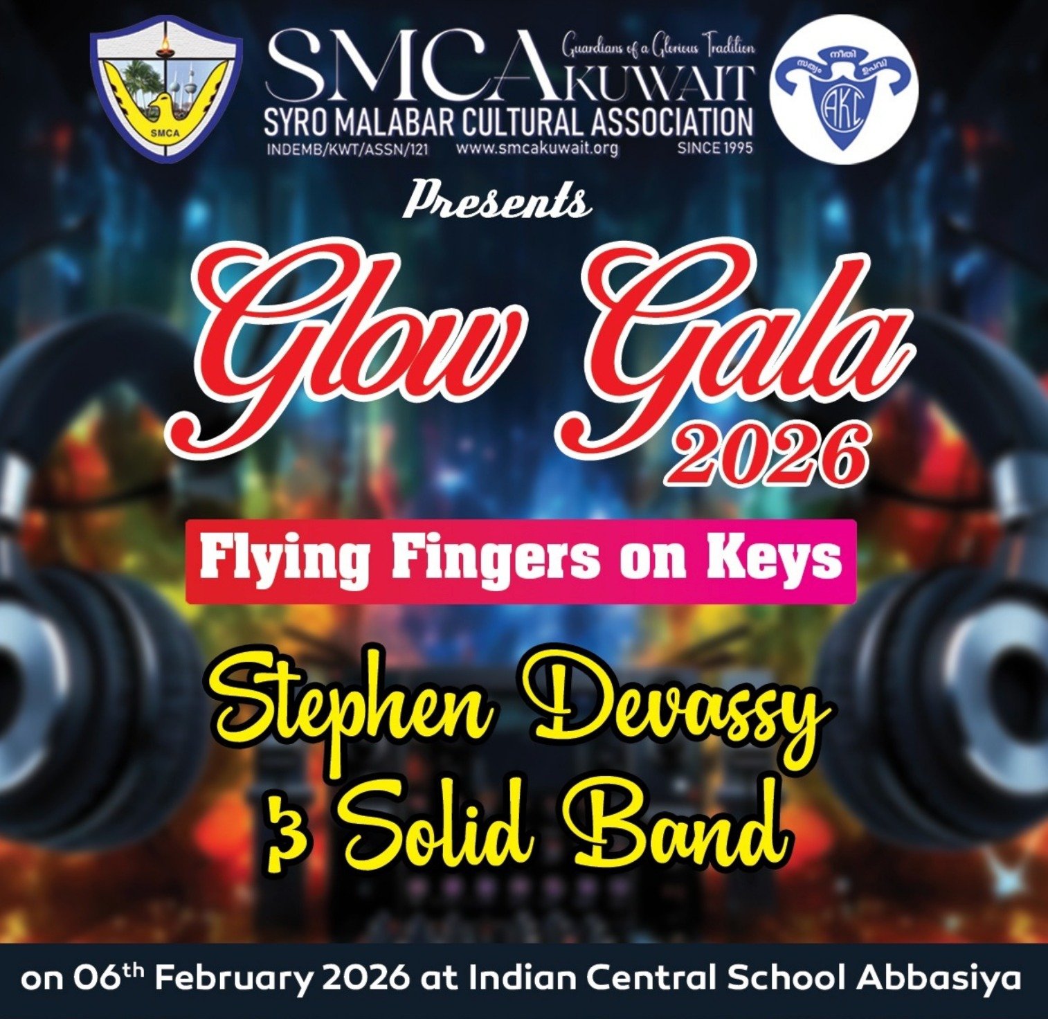 കുവൈറ്റ് — സീറോ മലബാർ കൾച്ചറൽ അസോസിയേഷൻ (SMCA KUWAIT) 2026-ലെ വാർഷിക കുടുംബ സംഗമങ്ങളുടെ ഭാഗമായി ഫെബ്രുവരി 6 വെള്ളിയാഴ്‌ച, വൈകിട്ട് 3 മണിക്ക് GLOW GALA 2026, എന്ന മെഗാ പരിപാടി അണിയിച്ചൊരുക്കുന്നു. smca പ്രസിഡന്റ് ശ്രീ ആന്റണി മനോജ് അധ്യക്ഷത വഹിക്കുന്ന പൊതുസമ്മേളനം ഇന്ത്യൻ അംബാസിഡർ ബഹു. ശ്രീമതി പ്രമിതാ ത്രിപദി ഉത്ഘാടനം ചെയ്യും, സെന്റ് ഡാനിയേൽ കോംബോനി ഇടവക വികാരി ബഹു.സോജൻ അച്ചൻ, യുവജന വിഭാഗം പ്രസിഡന്റ് ശ്രീമതി ജിഞ്ചു ചാക്കോ, വിമൻസ് വിങ് പ്രസിഡന്റ് ശ്രീമതി റിൻസി തോമസ്, ബലദീപ്തി പ്രസിഡന്റ് മാസ്റ്റർ ഡോൺ ജോസഫ്, കത്തോലിക്ക കോൺഗ്രസ് ഗ്ലോബൽ സെക്രട്ടറി ശ്രീ ജോബി മറ്റം എന്നിവർ ആശംസകൾ അർപ്പിച്ചു സംസാരിക്കും. സംഘടനയുടെ ട്രഷറർ ശ്രീ സോണി മാത്യുവിന്റെ നന്ദി പ്രകാശനത്തോടെ അവസാനിക്കുന്ന യോഗത്തിൽ വച്ച് വിവാഹത്തിന്റെ സിൽവർ ജൂബിലി ആഘോഷിക്കുന്നവരെ ആദരിക്കും, ഈ വര്ഷത്തെ ഡയറക്ടറി പ്രകാശനം ചെയ്യപ്പെടും. ജൂബിലി വർഷത്തെ മെഗാ ചാരിറ്റി പ്രോജെക്ടറും ചടങ്ങിൽ വച്ച് ലോഞ്ച് ചെയ്യപ്പെടും. പൊതു സമ്മേളനത്തിന് ശേഷം പുത്തൻ സംഗീത അനുഭവവുമായി സ്റ്റീഫൻ ദേവസി ബാൻഡ് എത്തുന്നു. പിയാനോ വിദഗ്ധനും സംഗീതസംവിധായകനും ആയ സ്റ്റീഫൻ ദേവസ്സി ആണ് ഈ പരിപാടിയുടെ മുഖ്യ ആകർഷണം. അന്താരാഷ്ട്ര തലത്തില recognized Stephen Devassy “Flying Fingers” എന്നറിയപ്പെടുന്ന പ്രകടന ശൈലിയിലൂടെ സംഗീത പ്രേമികളെ ആവേശത്തിലാക്കുന്ന ഒരു ആർടിസ്റ്റാണ്.