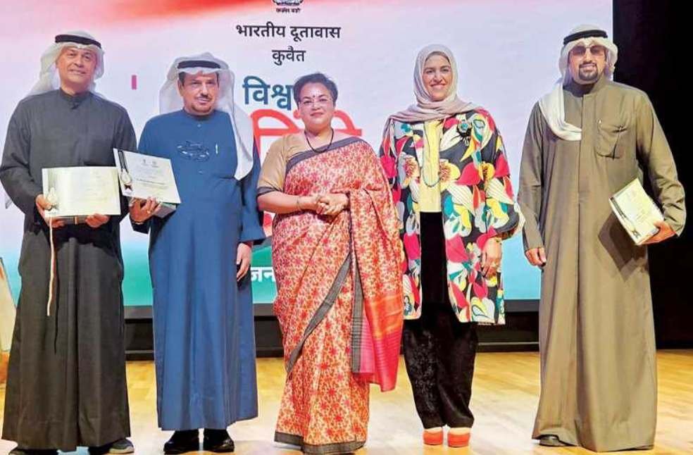 In a celebration of linguistic and cultural ties, the Indian Embassy in Kuwait honored four Kuwaiti citizens for their knowledge and promotion of the Hindi language on World Hindi Language Day. The honorees—Mubarak Rashid Al-Azmi, Saad Thahir Al-Rashidi, Iman Hussein Al-Kout, and Salah Khalaf—were recognized for their contributions to Hindi language and culture.
