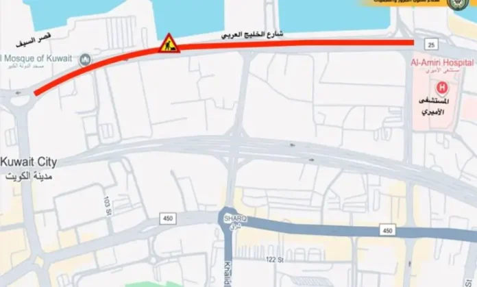 The General Traffic Department has announced the partial closure of three lanes on King Abdulaziz Bin Abdulrahman Al Saud Road (Fahaheel Road) for maintenance. The closure affects the fast lane, middle fast lane, and middle lane from the Al‑Aqila and Al‑Fintas Road intersection to the entrance of Al‑Riqa and Al‑Mahboula Bridge for traffic heading toward Fahaheel.