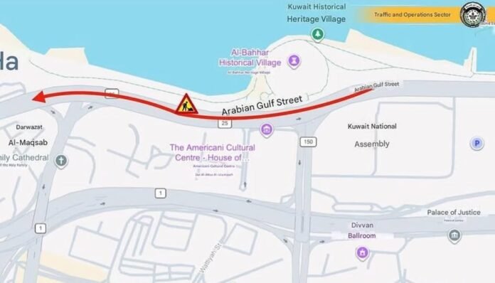 Kuwait’s Ministry of Public Works, in coordination with the General Traffic Department, has announced a temporary closure of Gulf Street opposite the National Assembly building. The road will be closed from Thursday at 6:00 PM until early Sunday morning, according to officials.