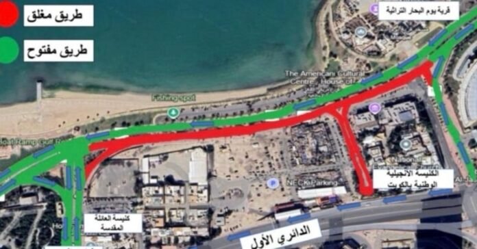 Kuwait’s Ministry of Public Works, in coordination with the General Traffic Department, has announced a temporary closure of Arabian Gulf Street from the Slaughterhouse intersection to the National Assembly intersection. The closure will begin at 6:00 pm on Thursday and continue until 6:00 am on Sunday, February 15, 2026.