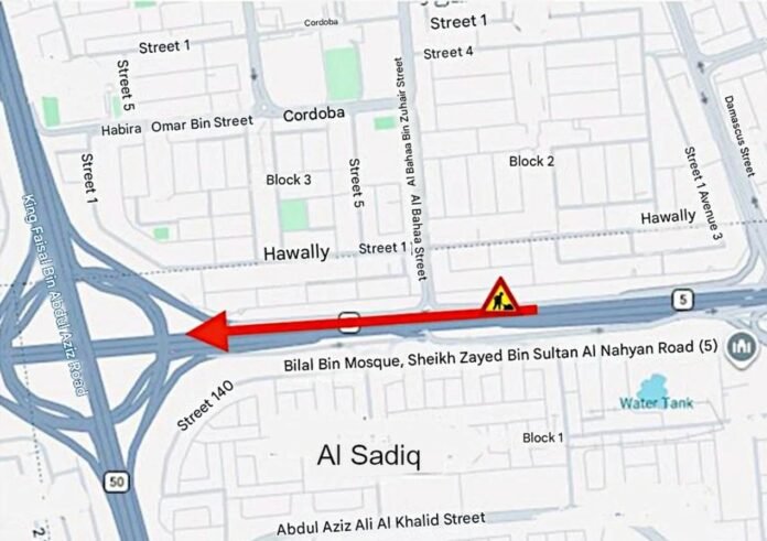 കുവൈത്ത് സിറ്റി: ജനറൽ ട്രാഫിക് വകുപ്പ് ഷെയ്ഖ് സായിദ് ബിൻ സുൽത്താൻ അൽ നഹ്യാൻ റോഡിലെ (അഞ്ചാം റിംഗ് റോഡ്) ഖുർതുബാ പ്രദേശത്ത് മൂന്ന് ഇടത് എക്സ്പ്രസ് ലെയിനുകൾ താൽക്കാലികമായി അടയ്ക്കുന്നതായി അറിയിച്ചു.