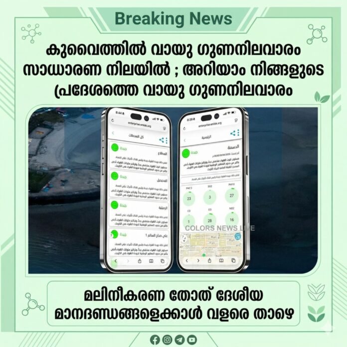 കുവൈത്ത് സിറ്റി: കുവൈത്തിലെ വായു ഗുണനിലവാരം സാധാരണ നിലയിലാണെന്നും മലിനീകരണ തോത് ദേശീയ മാനദണ്ഡങ്ങളെക്കാൾ വളരെ താഴെയാണെന്നും കുവൈത്ത് എൻവയോൺമെന്റ് പബ്ലിക് അതോറിറ്റി (KEPA) അറിയിച്ചു. ഫഹഹീൽ, റുമൈതിയ, അലി സബാഹ് അൽ സാലിം തുടങ്ങിയ പ്രദേശങ്ങളിലെ നിരീക്ഷണ കേന്ദ്രങ്ങളിൽ മലിനീകരണ തോത് വളരെ കുറഞ്ഞതായാണ് രേഖപ്പെടുത്തിയത്.