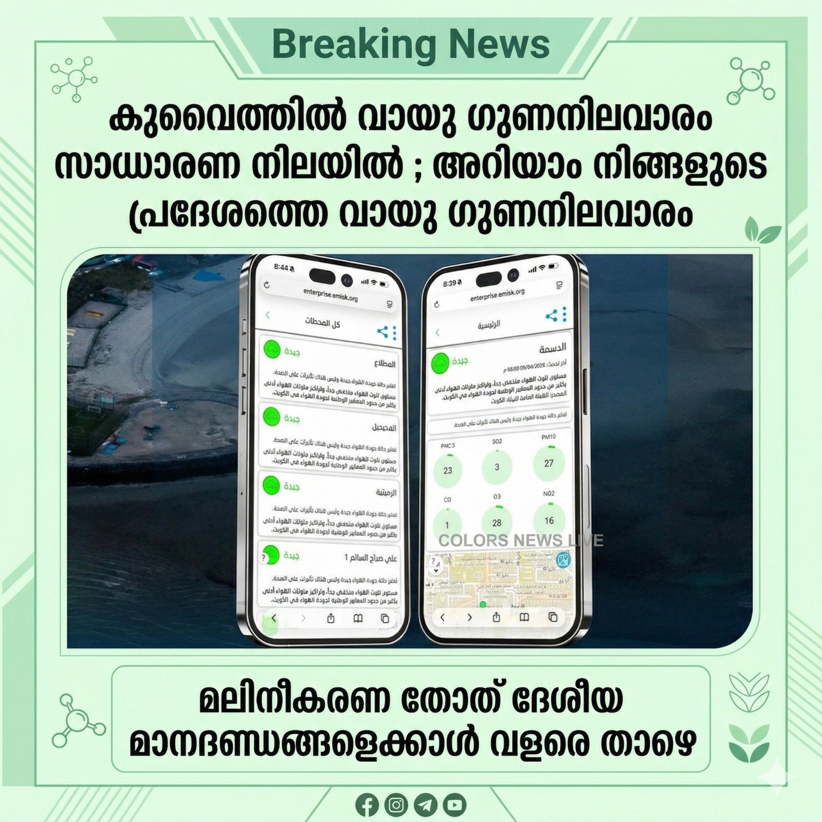 ജനങ്ങൾ റിയൽ-ടൈം വായു ഗുണനിലവാര വിവരങ്ങൾ പരിശോധിക്കാൻ ഓൺലൈൻ പ്ലാറ്റ്ഫോം ഉപയോഗിക്കണമെന്ന് അധികൃതർ നിർദേശിച്ചു.👉 നിങ്ങളുടെ പ്രദേശത്തെ വായു ഗുണനിലവാരം പരിശോധിക്കാൻ:https://enterprise.emisk.org/eMISKAirQuality/#/stations/ASt-16KEPA രാജ്യത്തെ വിവിധ നിരീക്ഷണ സ്റ്റേഷനുകൾ വഴി വായു മലിനീകരണ നില നിരന്തരം പരിശോധിച്ച് പൊതുജനങ്ങൾക്ക് വിവരങ്ങൾ നൽകുന്ന സംവിധാനമാണ്.