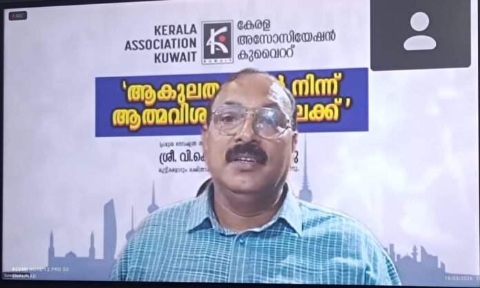 കുവൈറ്റ്സിറ്റി: നിലവിലെ അശാന്തമായ ലോകസാഹചര്യങ്ങളും സിബിഎസ്ഇ പരീക്ഷകൾ മാറ്റിവെച്ചതിനെത്തുടർന്നുണ്ടായ അനിശ്ചിതത്വവും മൂലം വിദ്യാർത്ഥികളിലും രക്ഷിതാക്കളിലും ഉടലെടുത്ത ആശങ്കകൾ പരിഹരിക്കാൻ ലക്ഷ്യമിട്ട് കേരള അസോസിയേഷൻ കുവൈറ്റ് പ്രത്യേക ഓൺലൈൻ വെബിനാർ സംഘടിപ്പിച്ചു. “ആകുലതകളിൽ നിന്ന് ആത്മവിശ്വാസത്തിലേക്ക്” എന്ന പ്രമേയത്തിൽ നടന്ന പരിപാടിയിൽ പ്രമുഖ സോഷ്യൽ ആക്ടിവിസ്റ്റും മോട്ടിവേഷണൽ സ്പീക്കറുമായ ശ്രീ. വി.കെ. സുരേഷ് ബാബു മുഖ്യപ്രഭാഷണം നടത്തി.