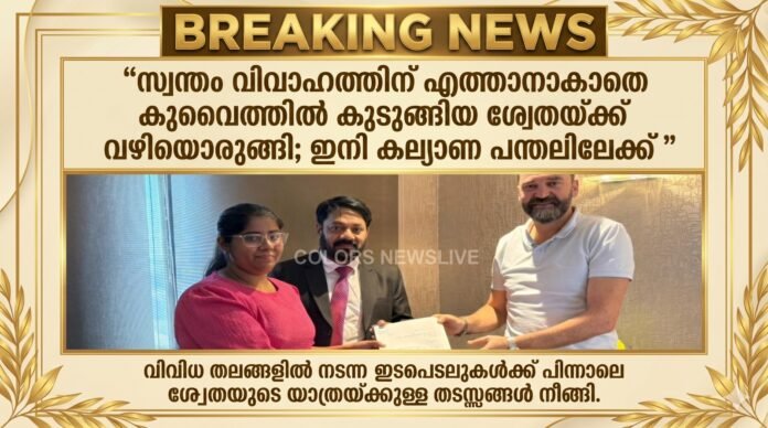 മനുഷ്യപരമായ പരിഗണന മുൻനിർത്തി സാമൂഹിക പ്രവർത്തകനും മെഡക്സ് മെഡിക്കൽ ഗ്രൂപ്പ് CEO ശറഫുദ്ധീൻ കണ്ണേത്ത് നടത്തിയ ഇടപെടലുകൾക്കും ചർച്ചകൾക്കും പിന്നാലെ, വിസ റദ്ദാക്കൽ പൂർത്തിയാകുന്നതിന് മുമ്പ് തന്നെ ശ്വേതയ്ക്ക് നാട്ടിലേക്ക് മടങ്ങാൻ കുവൈത്ത് എയർവേസ് അനുമതി നൽകുകയായിരുന്നു.ഇതോടെ വൈകിയെങ്കിലും വിവാഹത്തിന് നാട്ടിലെത്താൻ സാധിക്കുമെന്ന ആശ്വാസത്തിലാണ് സ്വേത, കൈറാനിലെ കുവൈത് എയർവേസ് ചെക്കിൻ പൂർത്തിയാക്കി കുവൈത്തിൽ നിന്ന് ദമാമിലേക്കും, നാളെ രാവിലെ ദമാമിൽ നിന്ന് കൊച്ചിയിലേക്കുമാണ് യാത്ര ക്രമീകരിച്ചിരിക്കുന്നത്.