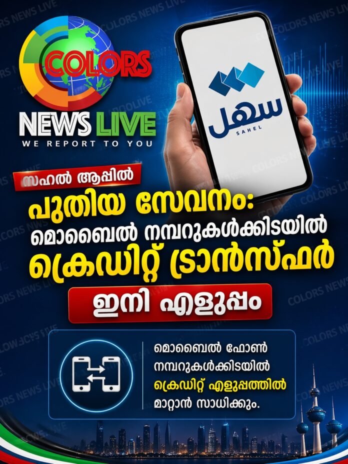 കുവൈത്ത് സിറ്റി: കുവൈത്തിലെ കമ്മ്യൂണിക്കേഷൻ മന്ത്രാലയം സഹൽ (Sahel) സർക്കാർ പ്ലാറ്റ്ഫോമിൽ പുതിയ ഡിജിറ്റൽ സേവനം ആരംഭിച്ചു. ഇതിലൂടെ മൊബൈൽ ഫോൺ നമ്പറുകൾക്കിടയിൽ ക്രെഡിറ്റ് എളുപ്പത്തിൽ മാറ്റാൻ സാധിക്കും.