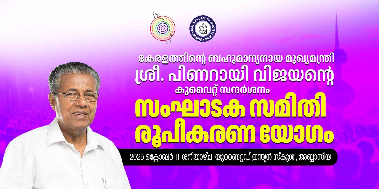 മുഖ്യമന്ത്രി പിണറായി വിജയൻ കുവൈറ്റ് സന്ദർശിക്കുന്നു — കുവൈറ്റ് മലയാളി സമൂഹത്തിന് ....