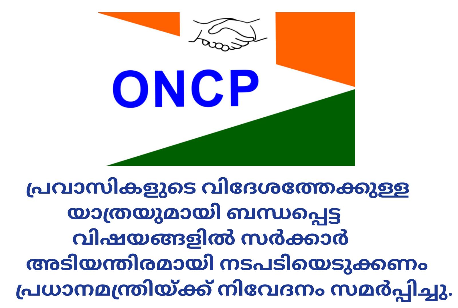 പ്രവാസികളുടെ ആവശ്യങ്ങളിൽ കേന്ദ്ര സർക്കാർ അടിയന്തിരമായി നടപടിയെടുക്കണം- ONCP പ്രധ ....