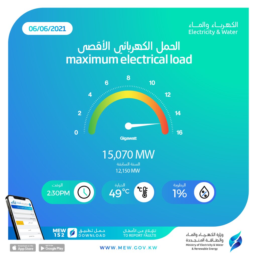 സൂചകം 15,000 മെഗാവാട്ട് കവിയുന്നു; കുവൈത്തിന്റെ ചരിത്രത്തിലെ ഏറ്റവും ഉയർന്ന വൈദ് ....