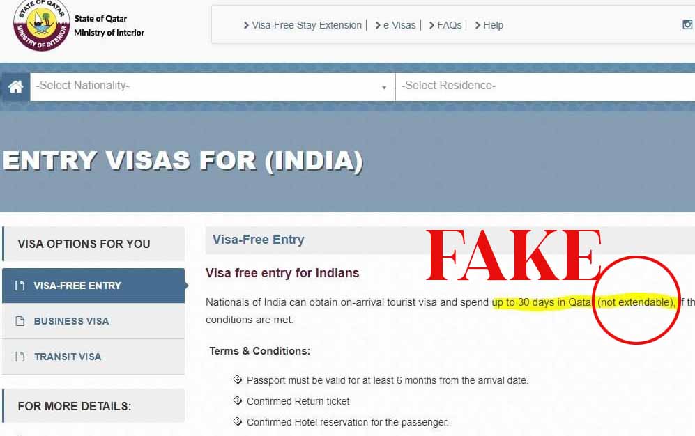 ഖത്തറിൽ ഓൺഅറൈവൽ വിസയുടെ കാലാവധി നീട്ടിനൽകില്ലെന്ന് വ്യാജ പ്രചാരണം
