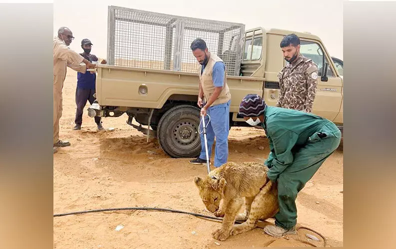 അലഞ്ഞുനടന്ന സിംഹത്തിന് വാഹനമിടിച്ച് പരിക്കേറ്റു