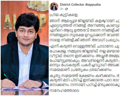മഴ തുടരുന്ന സാഹചര്യത്തിൽ ആലപ്പുഴയില് വിദ്യാഭ്യാസ സ്ഥാപനങ്ങള്ക്ക് നാളെ അവധി പ് ....